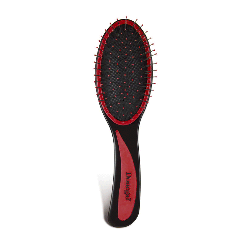 Szczotka do włosów długich i grubych. Doskonała do mocno splątanych włosów. Zapobiega strzępieniu się końcówek. Szczotka jest delikatna, nie wyrywa włosów. Plastikowe igiełki zakończone są zabezpieczającymi kuleczkami.